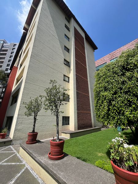 Edificio pequeño estilo mexicano contemporaneo, con excelente distribución, piso bajo, el departamento cuenta con 2 recámaras muy amplias la principal con vestidor, 2 bañis completos y medio baño de visitas, cocina integral y cuarto de servicio.